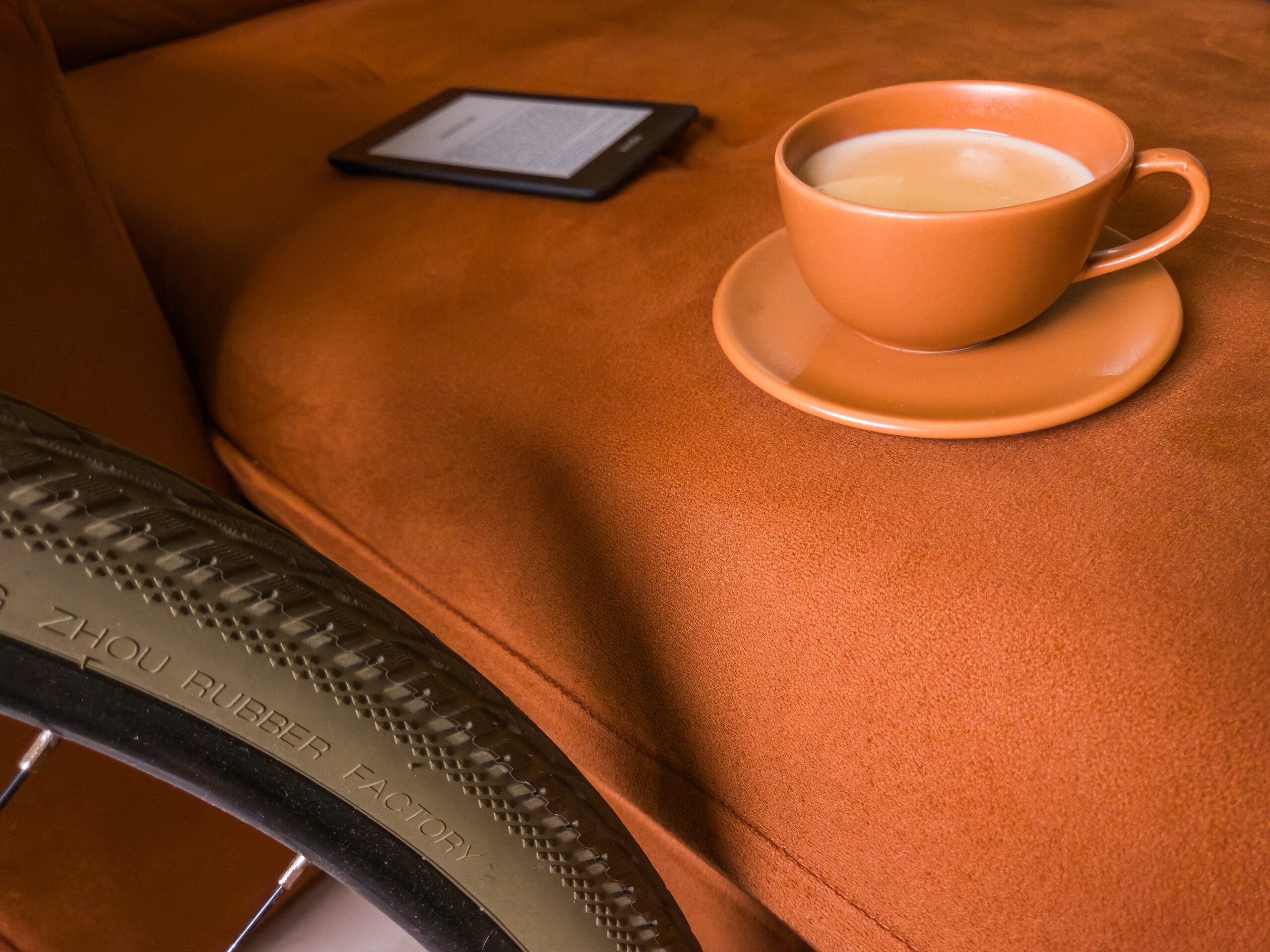 O sofá terracota abraça o meu corpo – sou absorvido por ele como a manteiga é absorvida pelo pão francês (cacetinho). Descanso as minhas pernas exaustas de tanto pedalar. O que antes era um lazer, agora virou o meu principal meio de transporte.